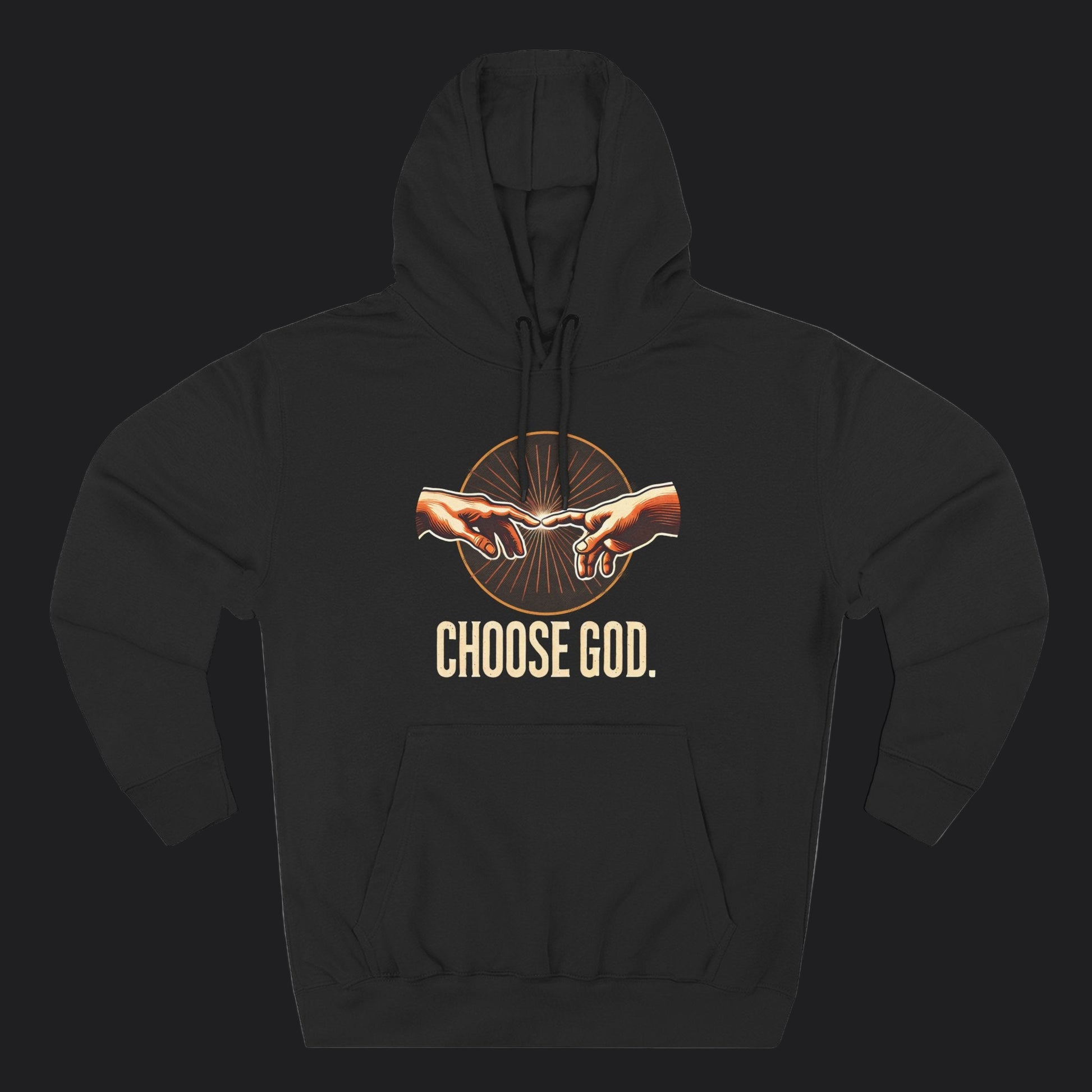 The "Choose God" Hoodie is a powerful reimagining of Michelangelo's iconic image from the Sistine Chapel—built for colder days and bolder faith. In this version, Adam doesn’t sit back with a passive hand; he actively reaches forward, extending his finger to meet God’s. The artwork captures that crucial moment of choice—the decision to move toward God instead of waiting for everything to come to you.