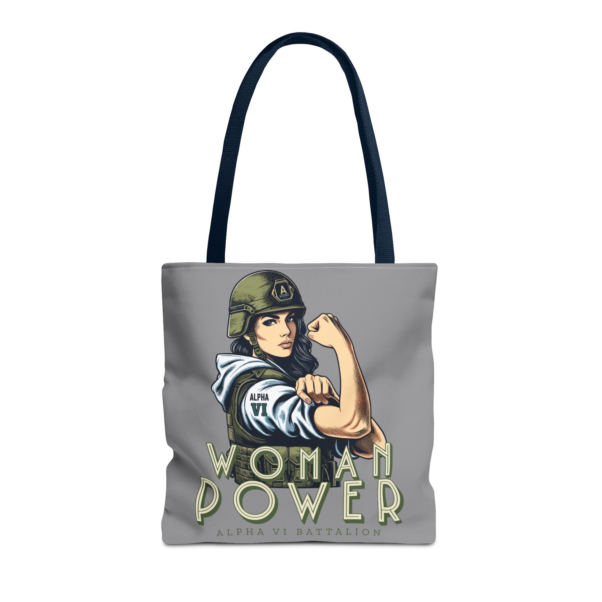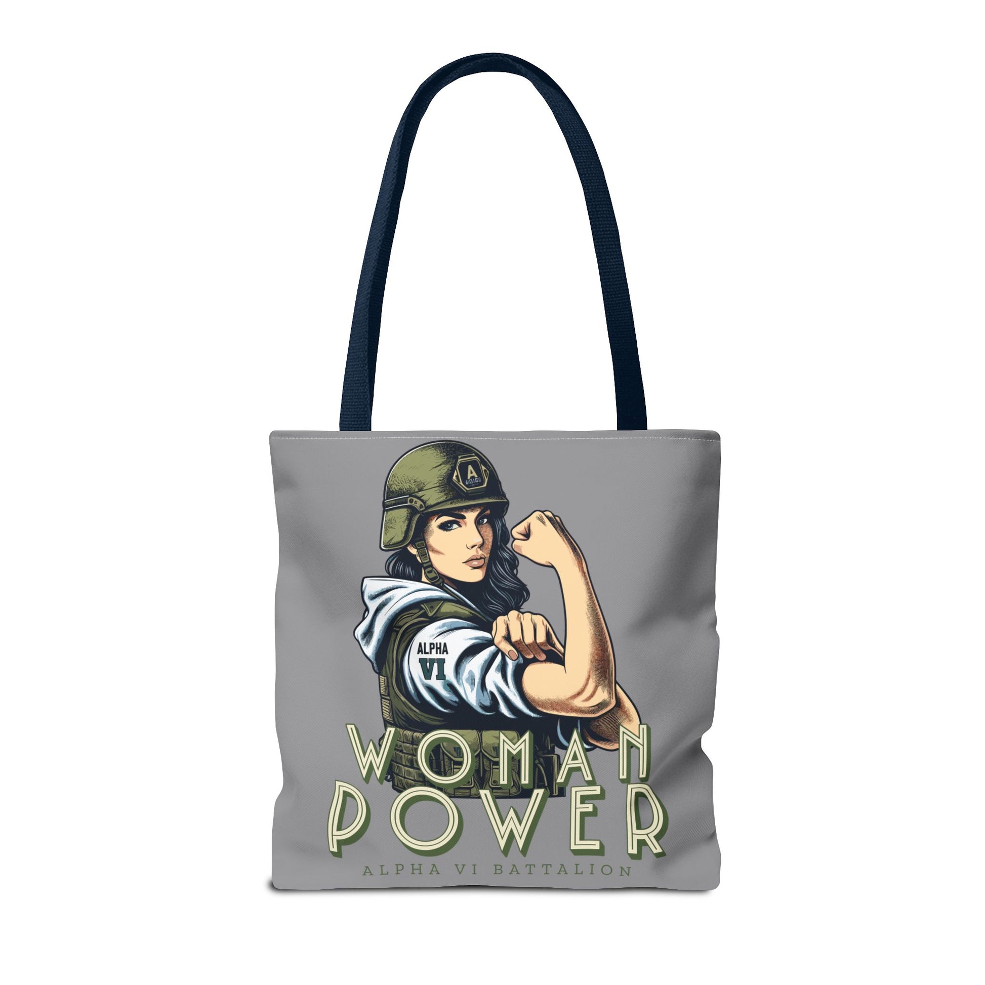 Celebrate Women's International Month with the Alpha VI Battalion Rosie the Riveter Tote Bag (Woman Power). This stylish and practical tote is perfect for everyday use — from errands in town to days at the beach — and is available in three sizes to carry everything you need for the day.